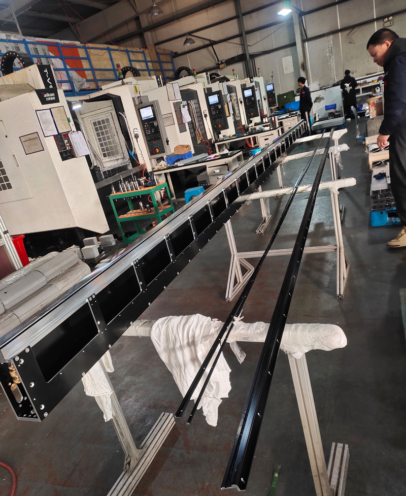一、 切割。這是基礎的加工服務,也是簡單的加工操作,最但是需要保障切割的精度,而且切割端麵需要保障沒有毛刺,一般型材6米長,可以根據框架的需求來切割不同的尺寸。