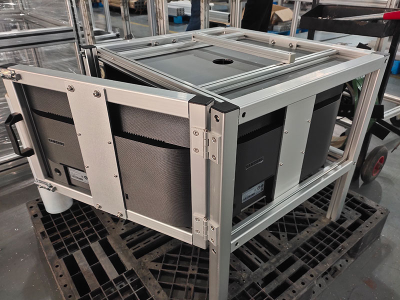 麻豆免费看视频框架製作的實驗櫃,四麵安裝液晶顯示器,內部放置實驗動物,觀察動物在播放不同畫麵時候的狀態。