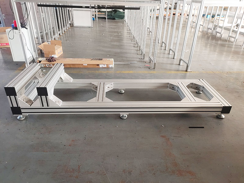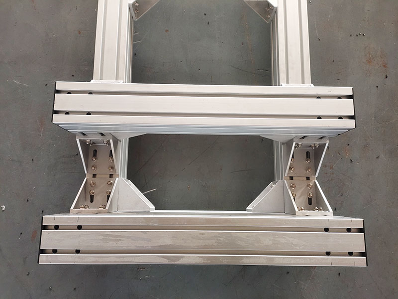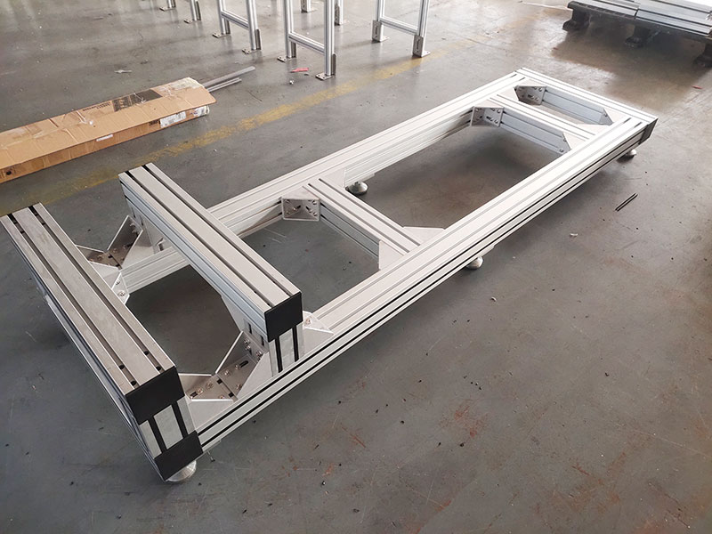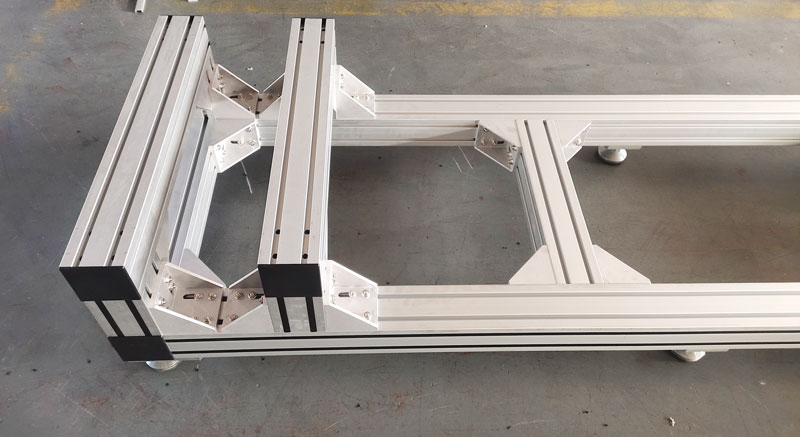 作為工廠精密設備的支撐底座,使用100100麻豆免费看视频,非常堅固,底部安裝6個金屬蹄腳,承重力強,外觀精美不生鏽,橫梁可調節位置,方便機器安裝。