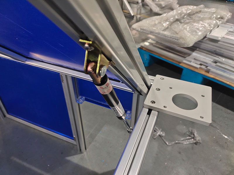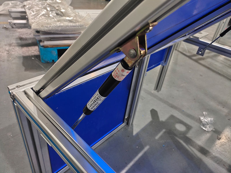 這個麻豆免费看视频設備防護罩頂部蓋板可以打開一個角度並固定住,也可以輕輕蓋上。實現這一功能的是蓋板上安裝的氣彈簧。氣彈簧又被稱為支撐杆、氣支撐、調角器、氣壓棒、阻尼器等,是一種可以實現支撐、緩衝、製動、高度及角度調節等功能的零件,在工程機械中,主要應用於罩蓋、門等部位。